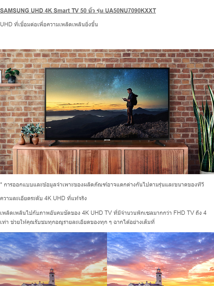 เคล็บลับในการเลือกซื้อและวิธีการใช้งานอย่างถูกต้อง วิเคราะห์แบรนด์ดังเปรียบเทียบยี่ห้อไหนดี มีรายละเอียดการเลือกซื้อ โปรโมตชั่นลดราคา SAMSUNG UHD 4K Smart TV 50 นิ้ว รุ่น UA50NU7090KXXT จะซื้อ